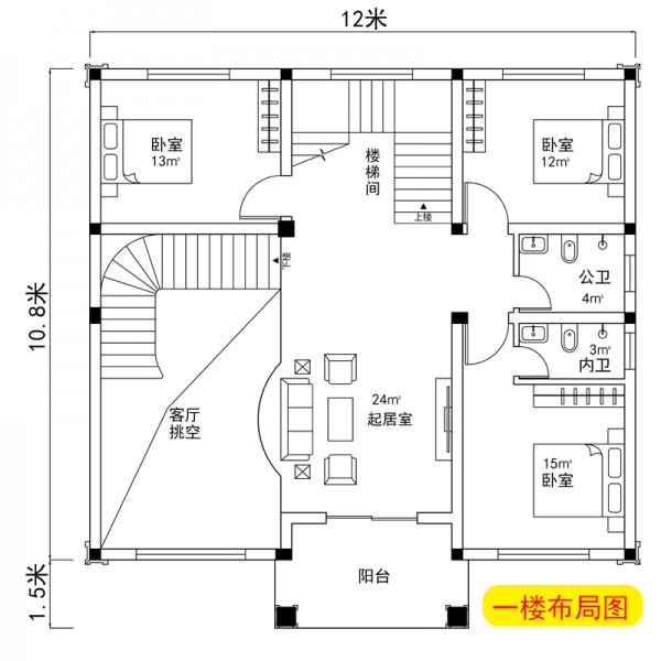 三层新中式12x10.8米