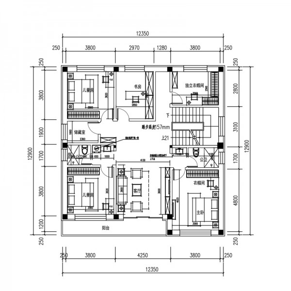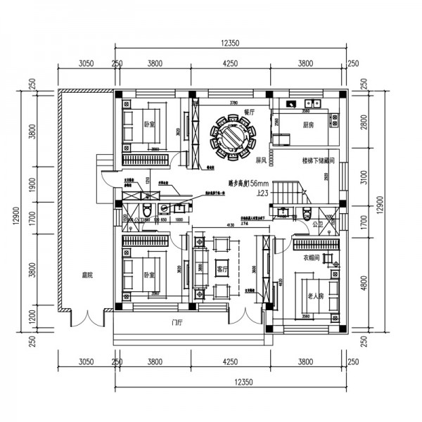 二层现代风格12.38x12.9米